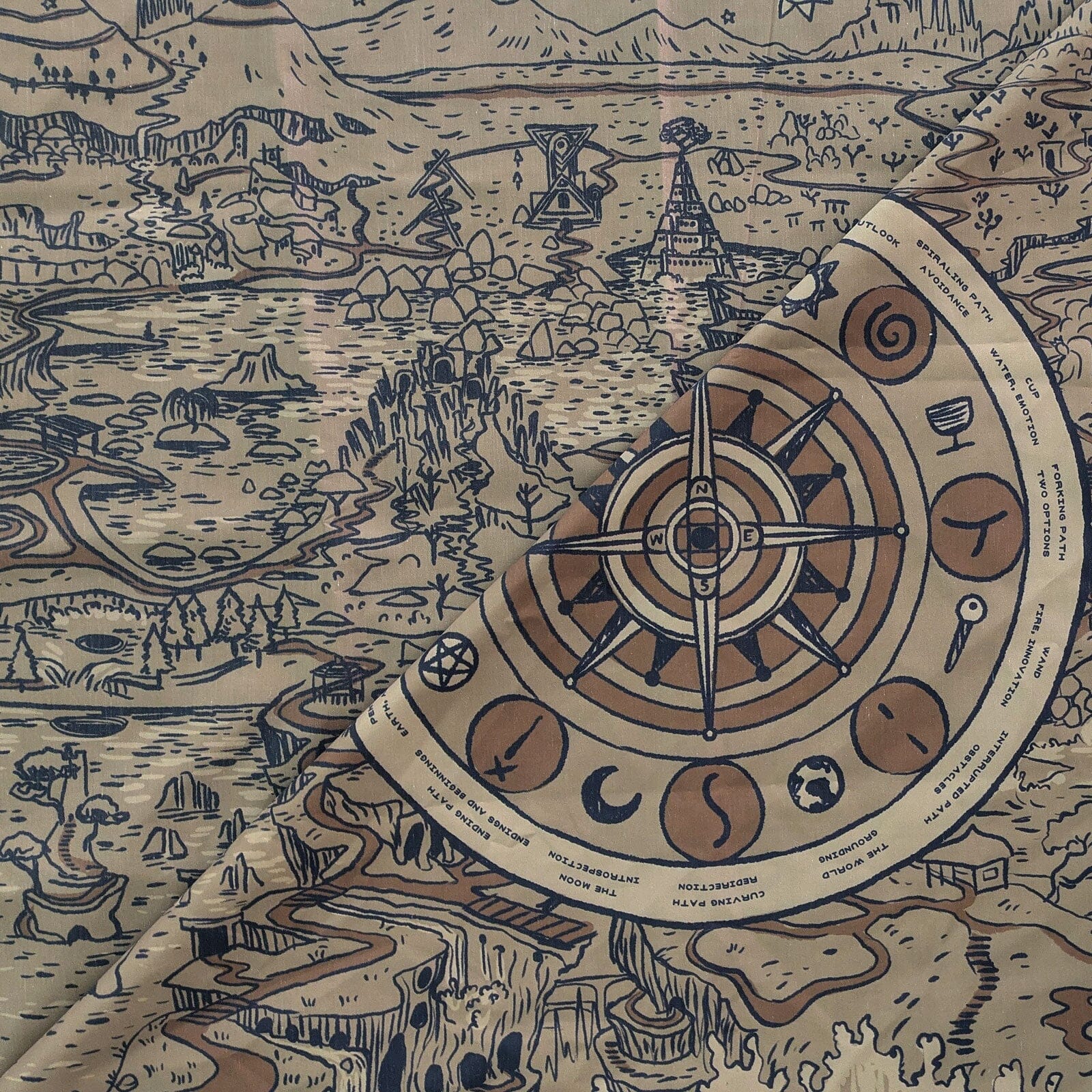 A large tapestry with the map of Many Paths on one side, and the Magic Compass on the other. Can be used for card spreads or for casting. Some printing defects and/or issues with stitching may be present.