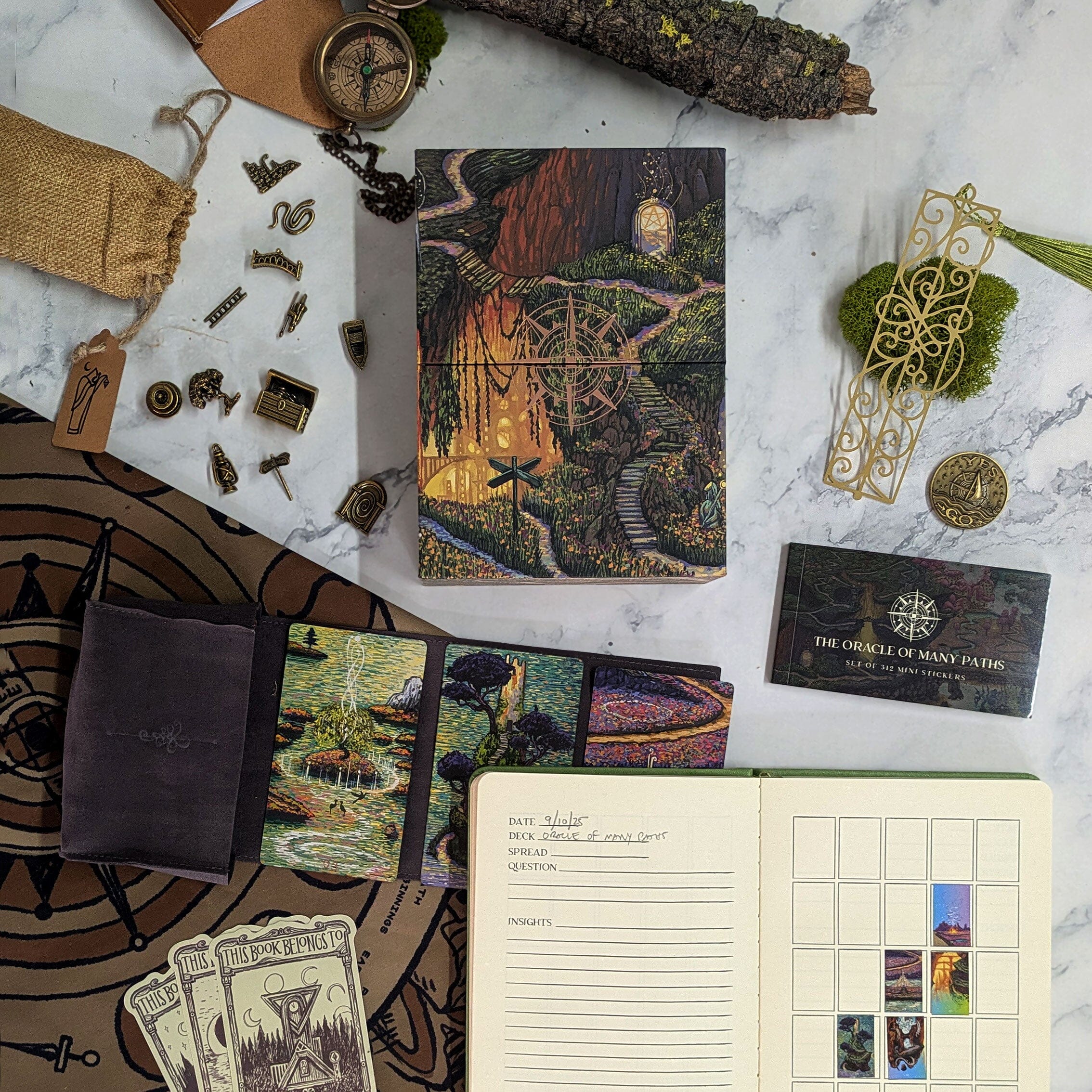 The Oracle of Many Paths is a deck of 78 tarot-sized cards that come together to form a map to a forgotten land, revealing how interconnected everything truly is.